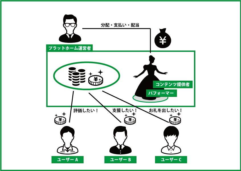 「投げ銭」とは、本来、大道芸やライブ、ストリートパフォーマンスを行う人たちに対して、楽しんだ観客が金銭を投げ入れて賞賛や支援を行うことですが、現在は、インターネット上の音楽、映像、テキスト、パフォーマンスなど各種コンテンツ提供者に対して、同様の行為を行うことを広く差しています。